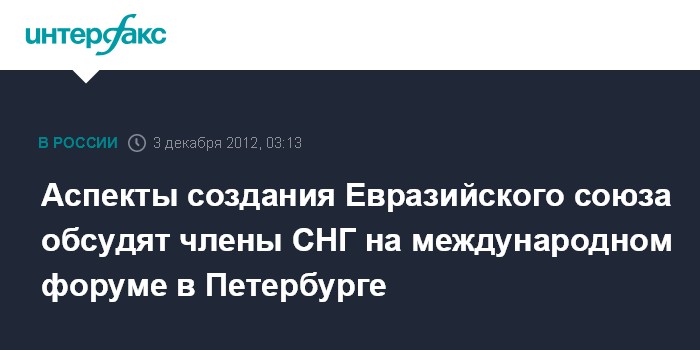 Аспекты создания Евразийского союза обсудят члены СНГ на международном форуме в Петербурге