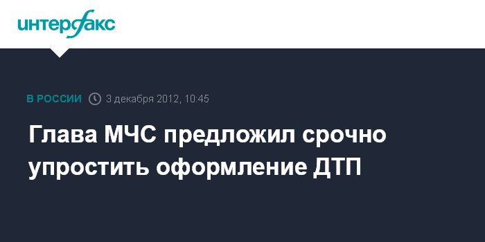 Москва. 3 декабря. INTERFAX.RU - Глава МЧС Владимир Пучков предложил упростить оформление легких ДТП на автотрассах.