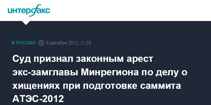 Суд признал законным арест экс-замглавы Минрегиона по делу о хищениях при подготовке саммита АТЭС-2012