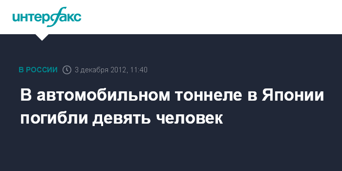 Токио. 3 декабря. INTERFAX.RU - Жертвами обрушения потолочной балки в автомобильном тоннеле в Японии стали не менее девяти человек, сообщили местные СМИ. Инцидент произошел в воскресенье на автодороге в префектуре Яманаси в 80 км от Токио.