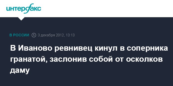 В Иваново ревнивец кинул в соперника гранатой, заслонив собой от осколков даму