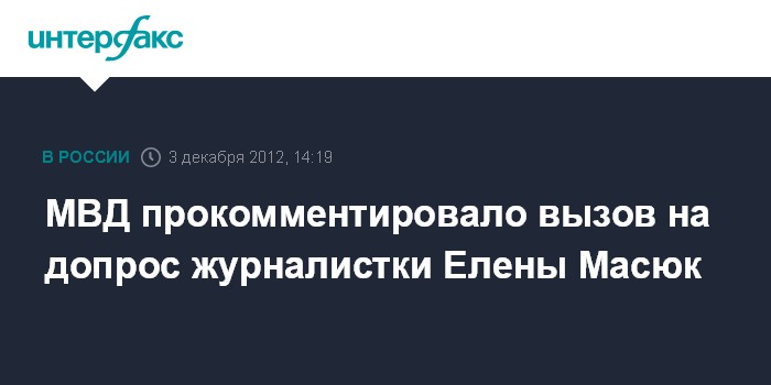 Москва. 3 декабря. INTERFAX.RU - Журналистку Елена Масюк побывала на допросе в столичной полиции в качестве свидетеля по уголовному делу, возбужденному по факту клеветы, сообщили "Интерфаксу" в пресс-службе ГУ МВД по Москве в понедельник.
