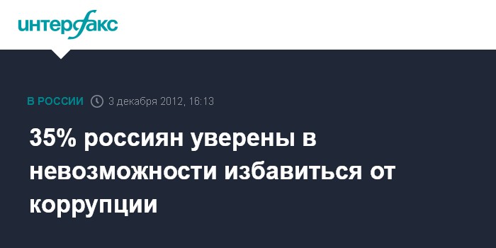 Москва. 3 декабря. INTERFAX.RU - Россияне пока не видят реальных успехов в борьбе с коррупцией, так как количество алчных российских чиновников, по их мнению, не снижается, показал ноябрьский опрос "Левада-Центра".
