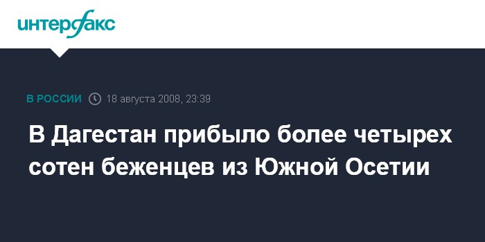 Махачкала. 18 августа. ИНТЕРФАКС - В понедельник в Дагестан на десяти автобусах прибыли 405 беженцев из Южной Осетии, сообщил "Интерфаксу" заместитель министра образования республики Муслим Телякавов.