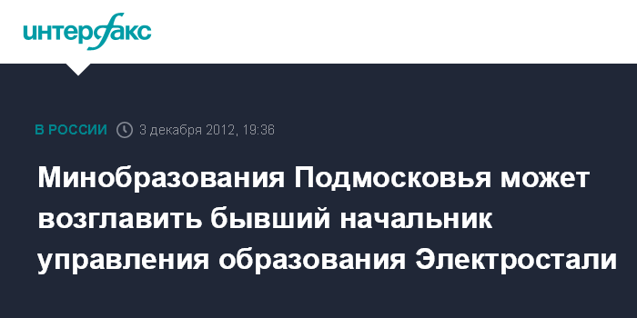 Минобразования Подмосковья может возглавить бывший начальник управления образования Электростали