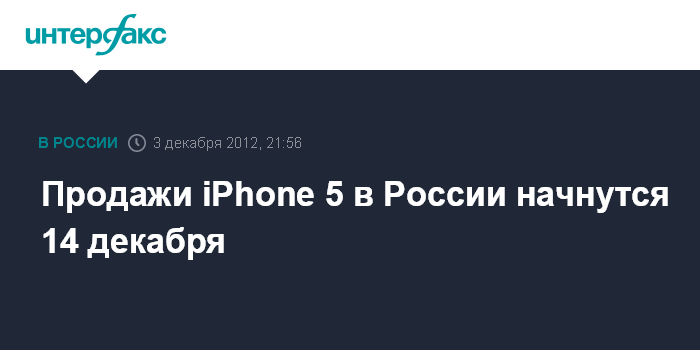 Москва. 3 декабря. INTERFAX.RU - Американская компания Apple начнет продажи новой модели своего смартфона iPhone 5 в России 14 декабря, говорится в сообщении компании.