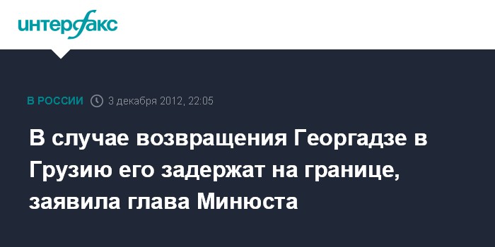 В случае возвращения Георгадзе в Грузию его задержат на границе, заявила глава Минюста