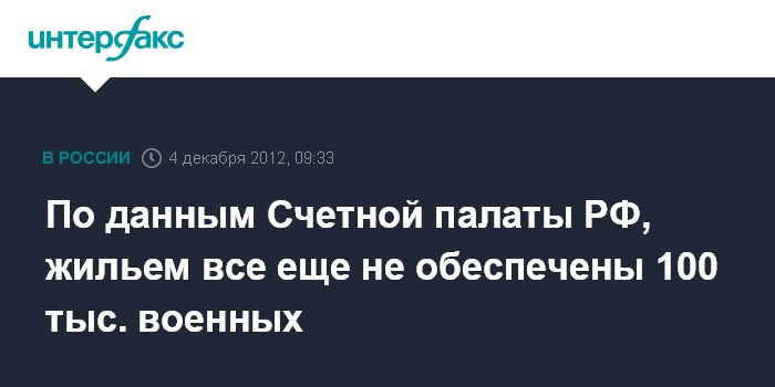 По данным Счетной палаты РФ, жильем все еще не обеспечены 100 тыс. военных