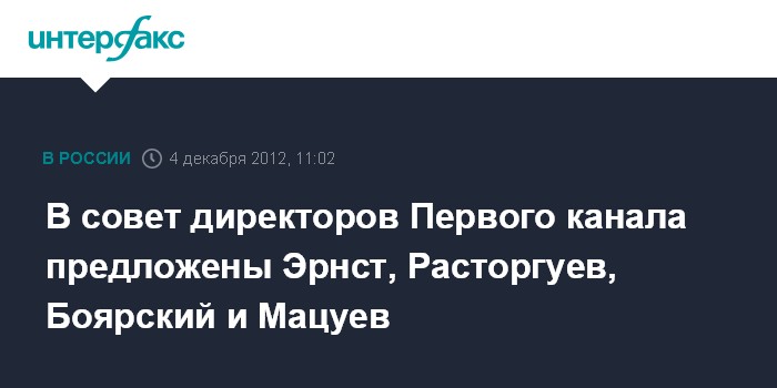 В совет директоров Первого канала предложены Эрнст, Расторгуев, Боярский и Мацуев