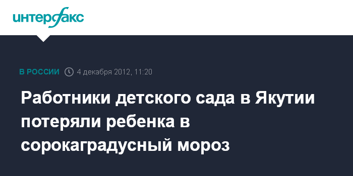 Работники детского сада в Якутии потеряли ребенка в сорокаградусный мороз