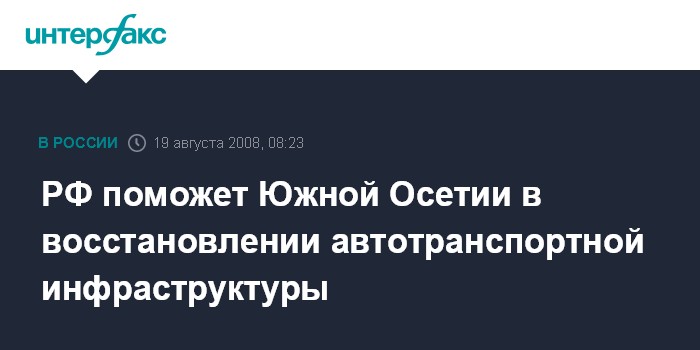 Москва. 19 августа. INTERFAX.RU - Минтранс РФ подготовил план первоочередных мероприятий по восстановлению автотранспортной инфраструктуры Южной Осетии, разработана программа восстановления этой инфраструктуры на 2008-2011 годы, сообщил замглавы Минтранса Борис Король в понедельник на заседании президиума правительства РФ.