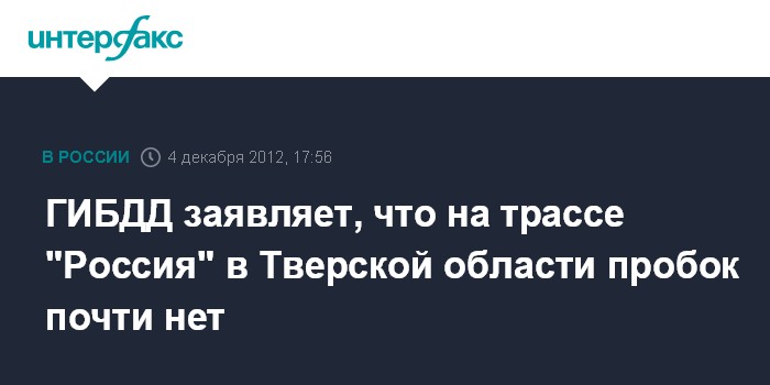 ГИБДД заявляет, что на трассе "Россия" в Тверской области пробок почти нет