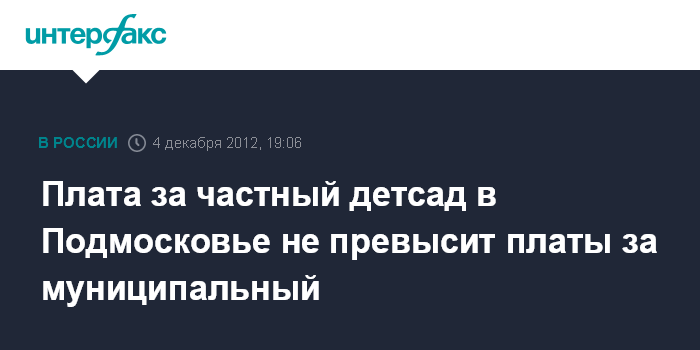 Красногорск. 4 декабря. INTERFAX.RU - Стоимость платы в частном детском саду в Московской области не превысит суммы, которую родители платят за муниципальный детский садик, сообщает пресс-служба правительства региона.