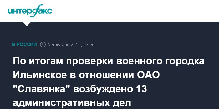 По итогам проверки военного городка Ильинское в отношении ОАО "Славянка" возбуждено 13 административных дел