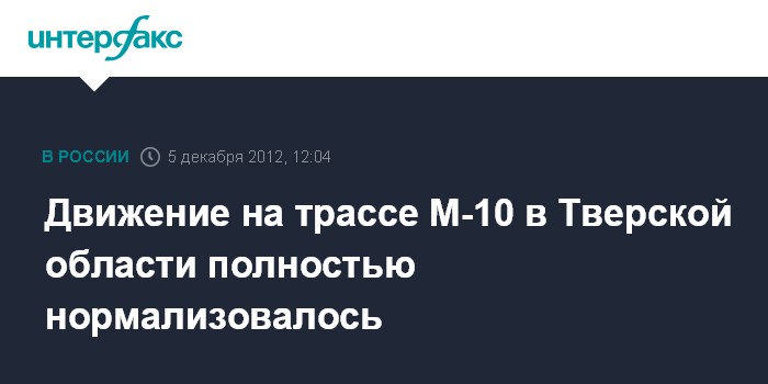 Тверь. 5 декабря. INTERFAX.RU - Движение на федеральной трассе М-10 "Россия" в Тверской области восстановлено в полном объеме, пробок нет, сообщили "Интерфаксу" в среду в региональном управлении ГИБДД.