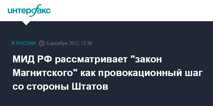 МИД РФ рассматривает "закон Магнитского" как провокационный шаг со стороны Штатов