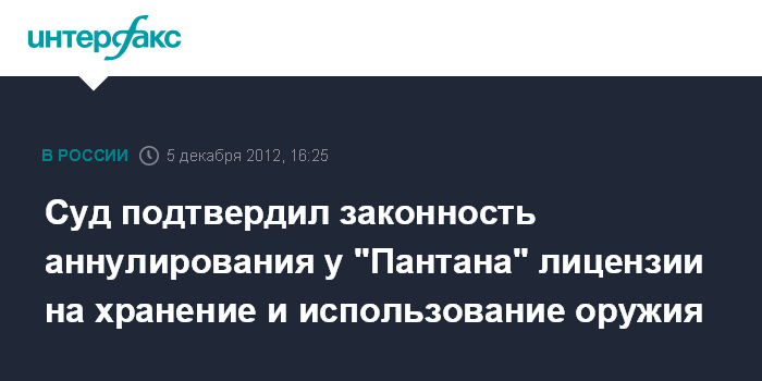 Суд подтвердил законность аннулирования у "Пантана" лицензии на хранение и использование оружия