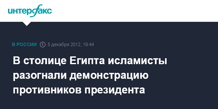Каир. 5 декабря. INTERFAX.RU - Участников проводимой в Каире акции протеста против президента Египта Мухаммеда Мурси в среду вечером разогнали сторонники радикального исламского движения "Братья-мусульмане", - сообщает в среду агентство AFP.