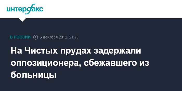 Москва. 5 декабря. INTERFAX.RU - Задержанный в ходе несанкционированной акции в центре Москвы активист "Другой России" Геннадий Строганов ранее сбежал из больницы во время отбывания административного ареста, сообщил журналистам представитель пресс-службы столичного главка МВД.