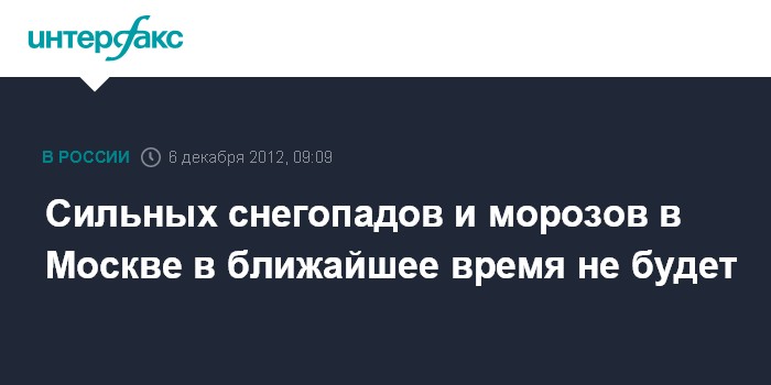 Сильных снегопадов и морозов в Москве в ближайшее время не будет