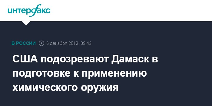 Вашингтон. 6 декабря. INTERFAX.RU - Правительственные войска в Сирии готовятся к применению химического оружия против оппозиции и ждут команды властей, сообщил в ночь на четверг телеканал NBC со ссылкой на данные официальных американских представителей.