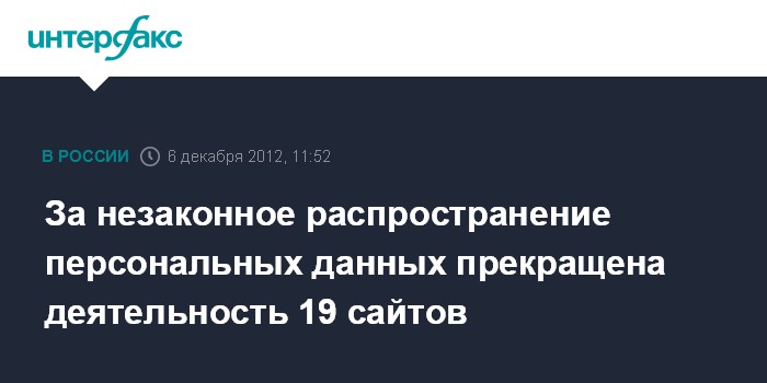 Согласно сообщению, в результате деятельности Роскомнадзора (уполномоченного органа по защите прав субъектов персональных данных в РФ) - прекращена деятельность интернет-сайтов: ardesing.ru, telnt.ru, poisk-baza.ru, telvoronezha.ru, spravochnikufa.ru, nomerakazani.ru, spravochnikomsk.ru, spravkairkutska.ru, newsitecom.ru, adresanovosibirska.ru, greylist.ru, new-interes.ru, petroline-spb.ru, reklama-krasnodar.ru, web-4-u.ru, tel-spravochnik.ru, mytopsite.ru, 09novosib.ru, 09piter.ru.