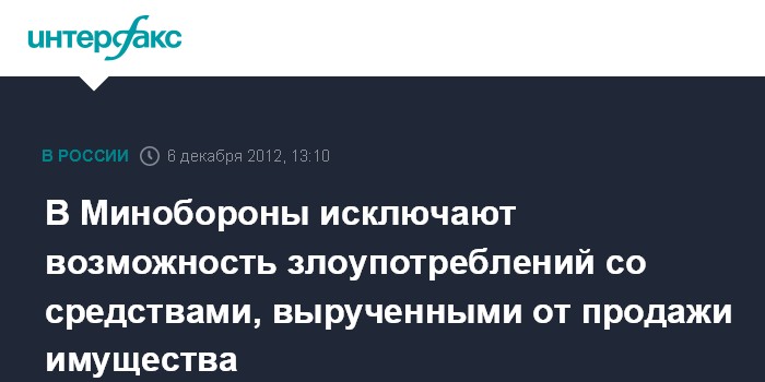 В Минобороны исключают возможность злоупотреблений со средствами, вырученными от продажи имущества