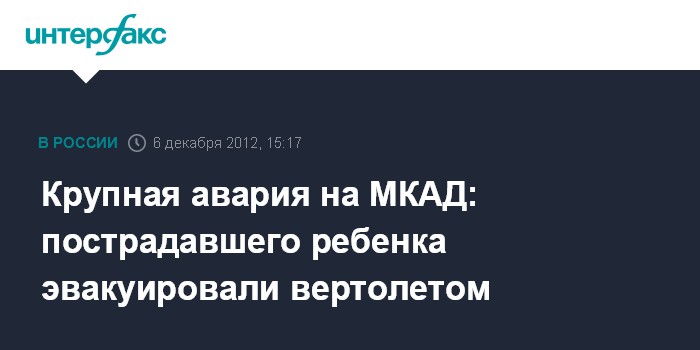 Крупная авария на МКАД: пострадавшего ребенка эвакуировали вертолетом