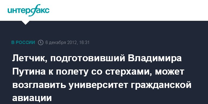 Летчик, подготовивший Владимира Путина к полету со стерхами, может возглавить университет гражданской авиации