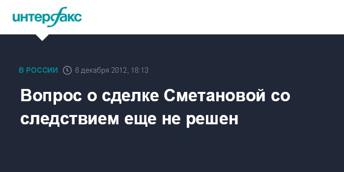 Москва. 6 декабря. INTERFAX.RU - Сделка с правосудием одного из фигурантов дела "Оборонсервиса" Екатерины Сметановой пока не заключена, несмотря на признание ею своей вины, заявили "Интерфаксу" в Главной военной прокуратуре (ГВП).