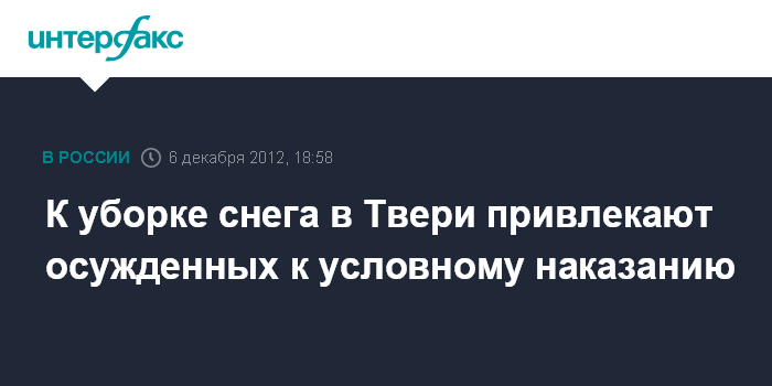 Тверь. 6 декабря. INTERFAX.RU - Управляющие компании в Твери, где действует режим ЧС, работают в усиленном режиме и задействуют в расчистке дворов от последствий обильных снегопадов условно осужденных.