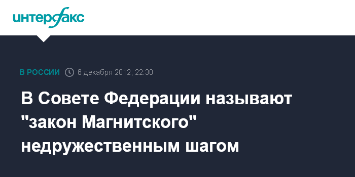 В Совете Федерации называют "закон Магнитского" недружественным шагом