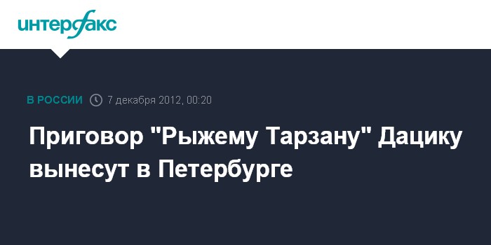 Приговор "Рыжему Тарзану" Дацику вынесут в Петербурге