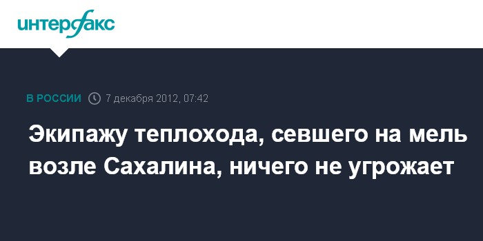 Экипажу теплохода, севшего на мель возле Сахалина, ничего не угрожает