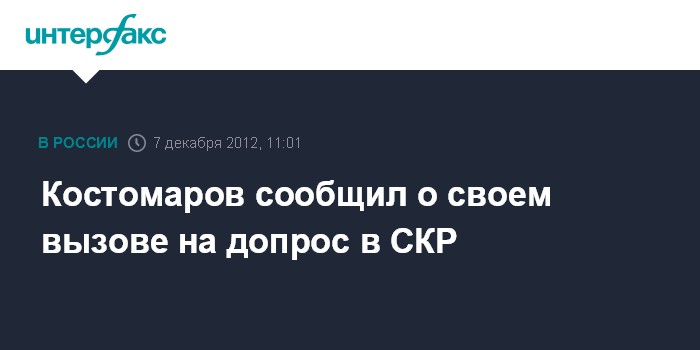 "Я вызван на допрос в ближайший рабочий день",- сказал Костомаров в эфире радиостанции "Коммерсант ФМ" в пятницу.