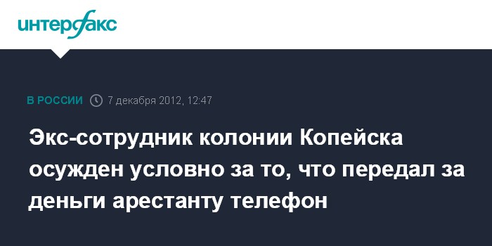 Челябинск. 7 декабря. INTERFAX.RU- Копейский городской суд Челябинской области вынес приговор бывшему сотруднику колонии N6 за то, что он за деньги передал заключенному телефон, сообщает пресс-службы прокуратуры региона в пятницу.