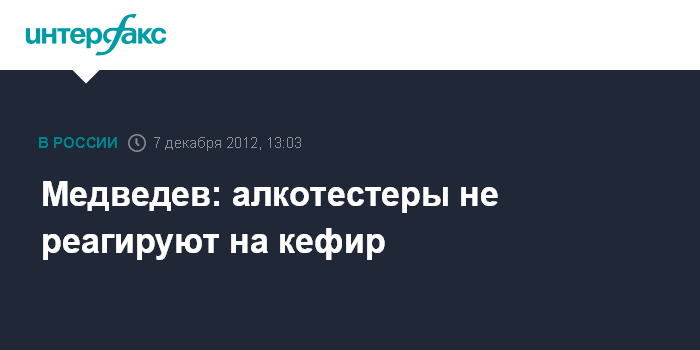 Москва. 7 декабря. INTERFAX.RU - Премьер-министр РФ Дмитрий Медведев утверждает, что мнение о влиянии на показания алкотестеров кефира и других употребленных в пищу неалкогольных продуктов - это плод фантазии.