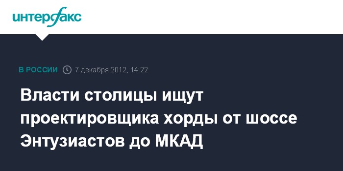 Москва. 7 декабря. INTERFAX.RU - Департамент строительства Москвы объявил конкурс на выполнение проектных работ участка Северо-Восточной хорды от Шоссе Энтузиастов до МКАД, сообщили в пресс-службе департамента.