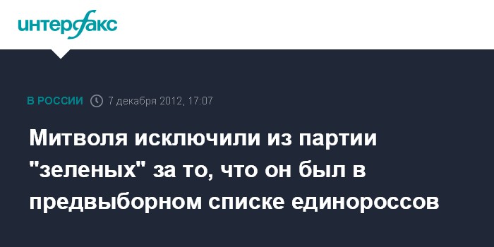 В партии поясняют, что исключение Митволя связано с тем, что его фамилия значилась в списке региональных кандидатов от "Единой России", в то время как он состоял в Альянсе зеленых.