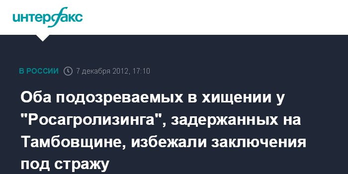 Оба подозреваемых в хищении у "Росагролизинга", задержанных на Тамбовщине, избежали заключения под стражу