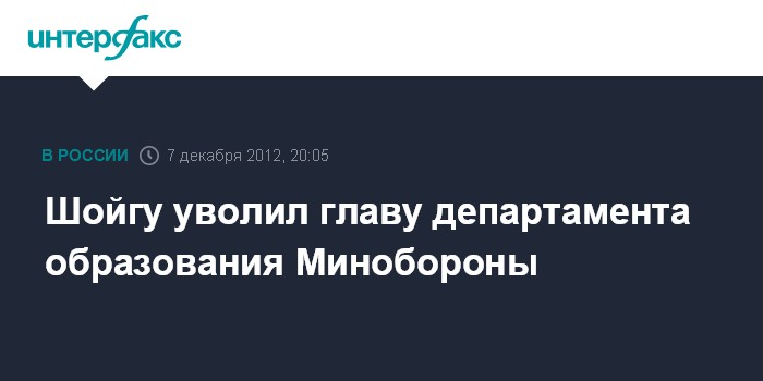 Москва. 7 декабря. INTERFAX.RU - Приказом министра обороны РФ Сергея Шойгу от занимаемой должности освобождена директор департамента образования военного ведомства Екатерина Приезжева.