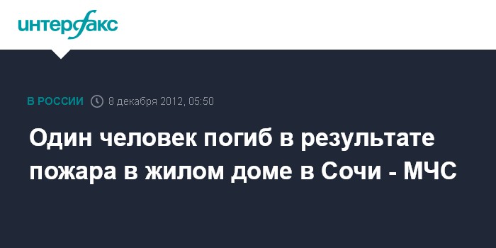 Один человек погиб в результате пожара в жилом доме в Сочи - МЧС