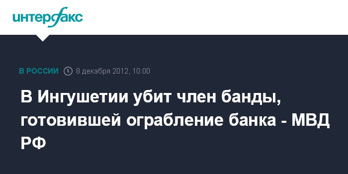 В Ингушетии убит член банды, готовившей ограбление банка - МВД РФ