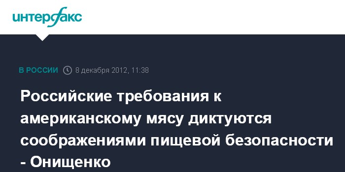 Российские требования к американскому мясу диктуются соображениями пищевой безопасности - Онищенко