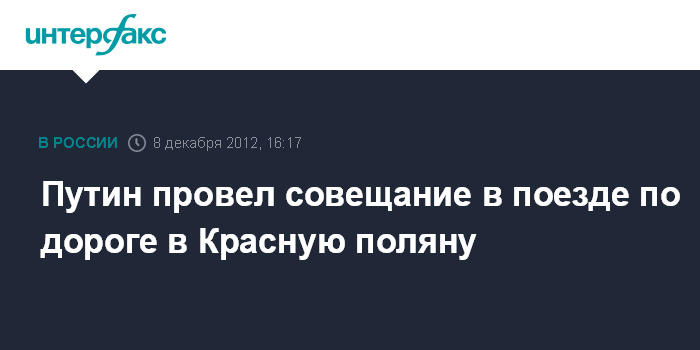 Москва. 8 декабря. INTERFAX.RU - Президент РФ Владимир Путин в субботу проехал на пассажирском поезде РА-2 по новой железной дороге, ведущей в Красную поляну. Глава государства проинспектировал весь путь новой железной дороги, проехав из Сочи в Адлер и до конечного пункта на Красной поляне. В ходе движения президент провел совещание, связанное с подготовкой объектов к Олимпийским играм.