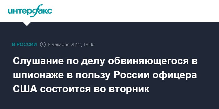 Слушание по делу обвиняющегося в шпионаже в пользу России офицера США состоится во вторник