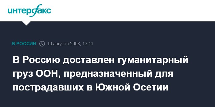 Москва. 19 августа. INTERFAX.RU - Более 15 тонн гуманитарной помощи для Южной Осетии доставлены самолетом из Белграда во Владикавказ представителями верховного комиссара ООН по Северному Кавказу. "Мы работаем на Кавказе уже около 13 лет и активно помогаем перемещенным лицам. В состав прибывших грузов входят одеяла, матрасы, контейнеры для воды, то есть то, о чем нас просило правительство Южной Осетии", - сообщил "Интерфаксу" во вторник представитель по делам беженцев верховного комиссара ООН по Северному Кавказу Джо Хигинауэр.