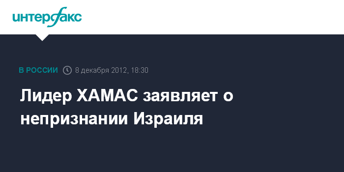 Лидер ХАМАС заявляет о непризнании Израиля