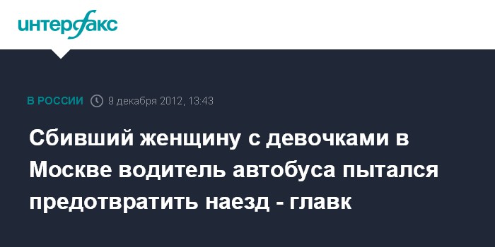 Сбивший женщину с девочками в Москве водитель автобуса пытался предотвратить наезд - главк