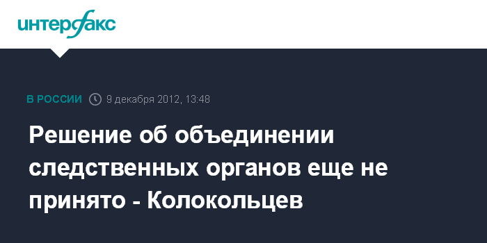 Решение об объединении следственных органов еще не принято - Колокольцев